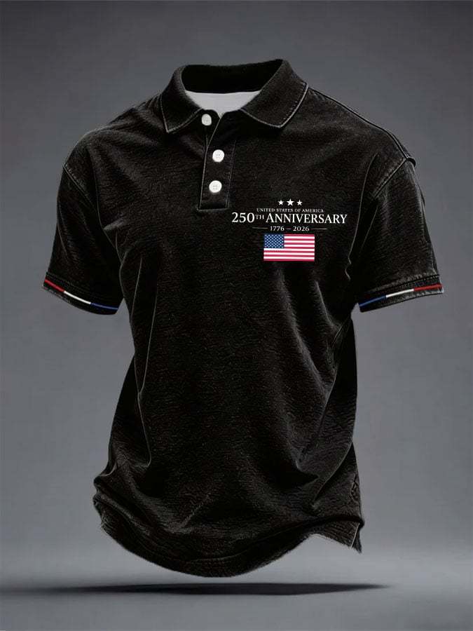 Men's 250th Anniversary National Flag Print Casual Polo Shirt